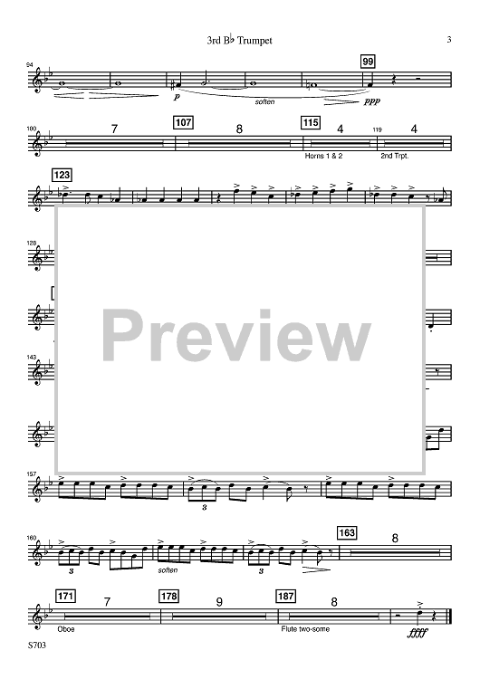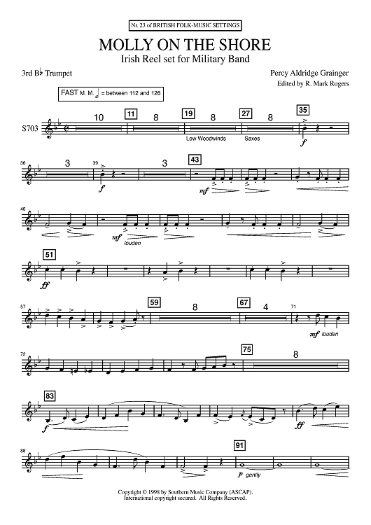 Digital Sheet Music for Molly on the Shore - Bb Trumpet 3 by Percy Grainger, R. Mark Rogers scored for Concert Band; id:503090