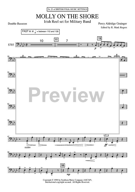 Digital Sheet Music for Molly on the Shore - Contrabassoon by Percy Grainger, R. Mark Rogers scored for Concert Band; id:503081