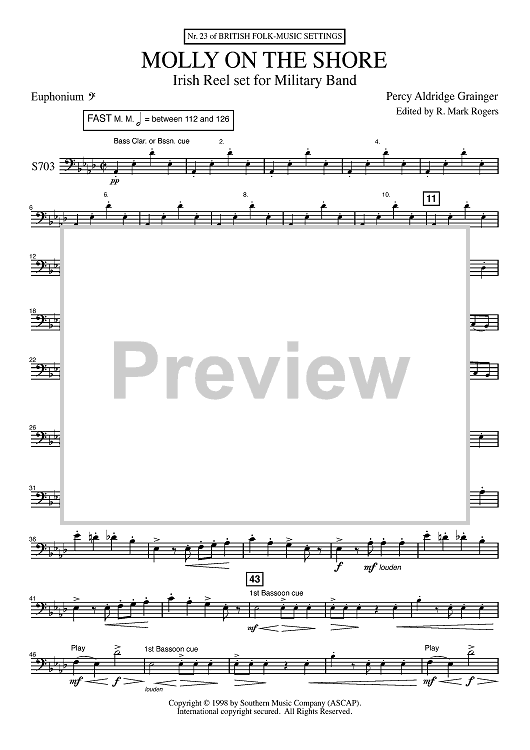 "Molly on the Shore - Euphonium BC" Sheet Music by Percy Grainger