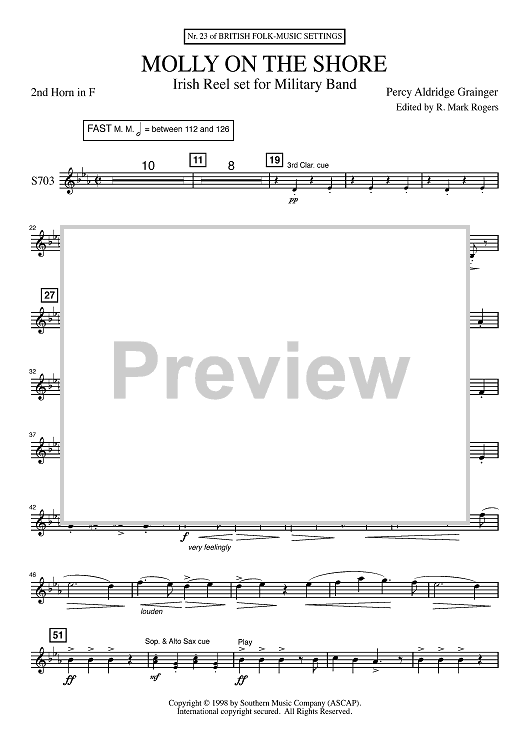 "Molly on the Shore - F Horn 2" Sheet Music by Percy Grainger