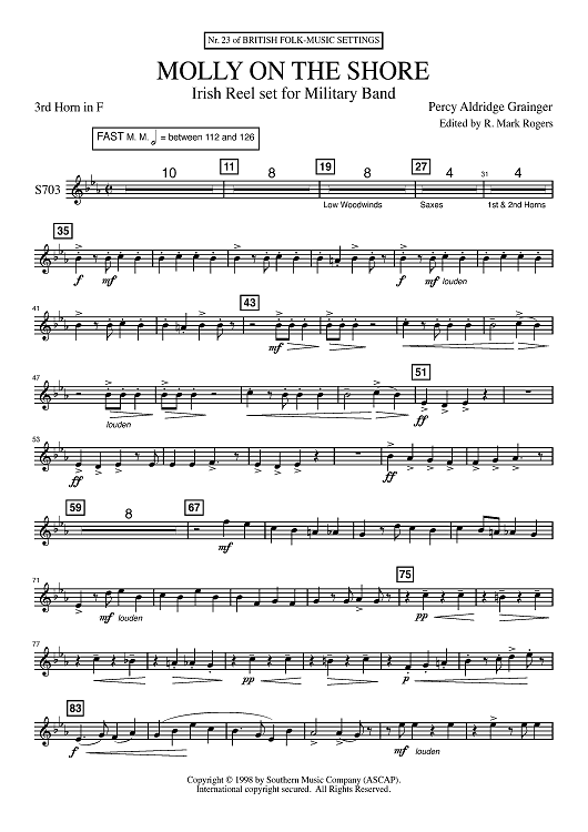 Digital Sheet Music for Molly on the Shore - F Horn 3 by Percy Grainger, R. Mark Rogers scored for Concert Band; id:503094