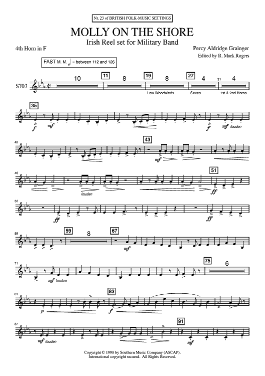 Digital Sheet Music for Molly on the Shore - F Horn 4 by Percy Grainger, R. Mark Rogers scored for Concert Band; id:503095