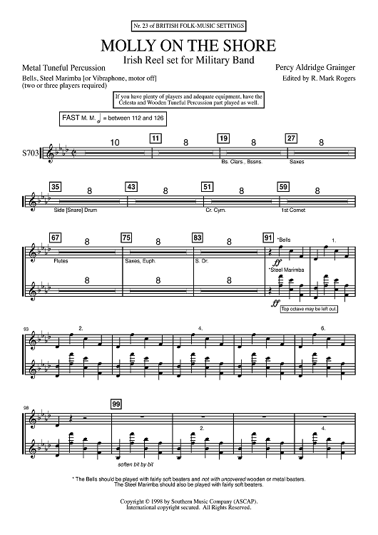 Digital Sheet Music for Molly on the Shore - Metal Tuneful Percussion by Percy Grainger, R. Mark Rogers scored for Concert Band; id:503105