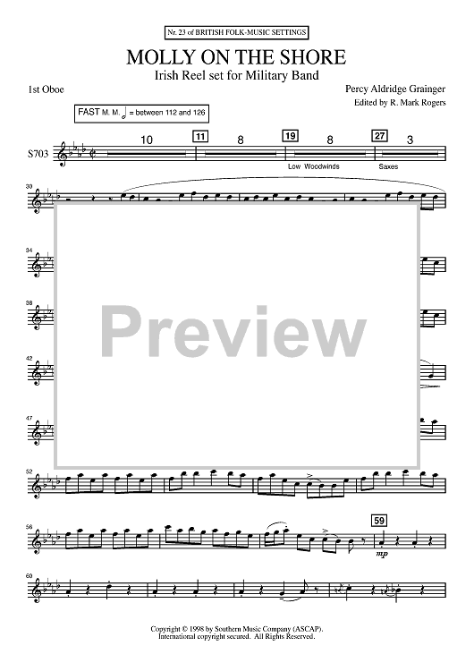 Digital Sheet Music for Molly on the Shore - Oboe 1 by Percy Grainger, R. Mark Rogers scored for Concert Band; id:503068