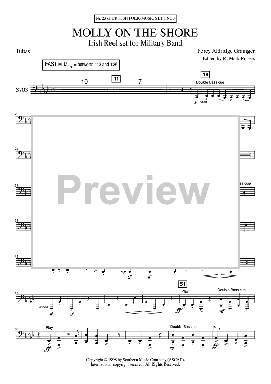 Digital Sheet Music for Molly on the Shore - Tuba by Percy Grainger, R. Mark Rogers scored for Concert Band; id:503101
