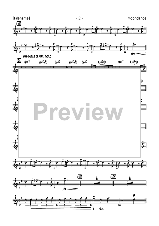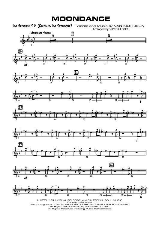 Digital Sheet Music for Moondance - Baritone 1 TC by Van Morrison, Victor Lopez scored for Jazz Ensemble; id:358820