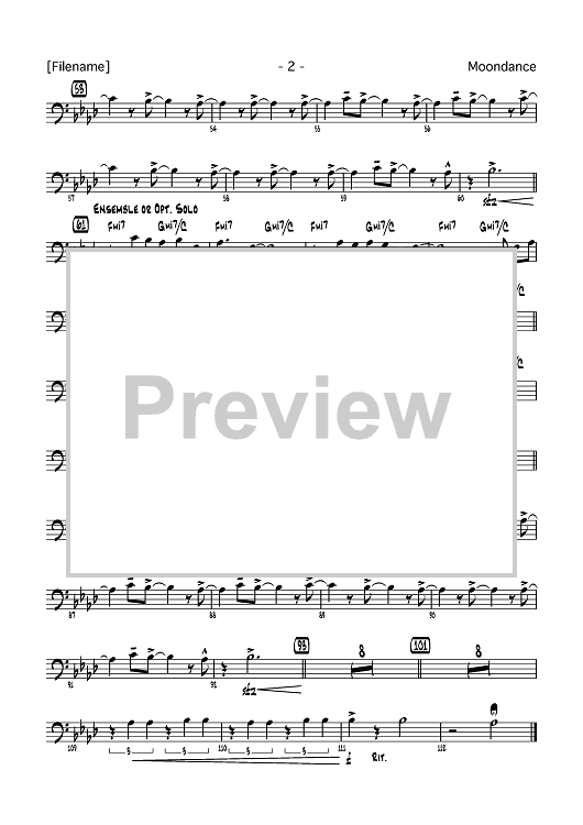 Digital Sheet Music for Moondance - Trombone 2 by Van Morrison, Victor Lopez scored for Jazz Ensemble; id:358816