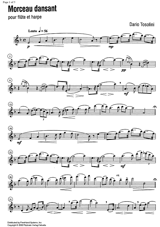 Digital Sheet Music for Morceau dansant (Dancing piece) - Flute by Dario Tosolini scored for Flute/Harp; id:351462