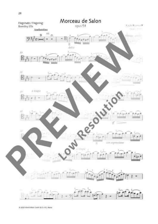 Belgian composer and cellist Louis Jean Marie Baerwolf (Barwolf) was born in Bruges in 1841 (his exact date of birth is unknown) and died in Brussels on 12.1.1899. He first studied violin, cello and piano at the Conservatoire in Liège – and also played the organ in his native Bruges. From 1862 he studied at the Conservatoire Royal in Brussels. After completing his studies, he was employed for many years at the Théâtre Royal de la Monnaie in Brussels, where his brother Jean worked as a conductor; from 1889-1898 he worked as librarian at that theatre. Baerwolf composed primarily church music, including a Requiem, several masses and motets; he also wrote songs, chamber music and a Cello Concerto op. 48. Two of his compositions for cello and piano were published by Schott: a Mouvement perpétuel op. 66 and our choice, the melodic Morceau de Salon op. 54, which makes a good encore piece. It was published by Schott in 1873 as plate no. 20831.