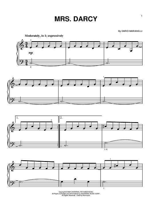 Digital Sheet Music for Mrs. Darcy by Dario Marianelli scored for Easy Piano; id:391002