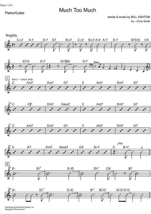 "Much Too Much - Piano" Sheet Music by Bill Ashton