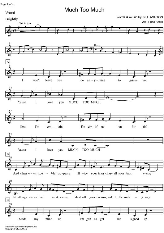 Digital Sheet Music for Much Too Much - Voice by Chris Smith, Bill Ashton scored for Voice/Ensemble; id:322714