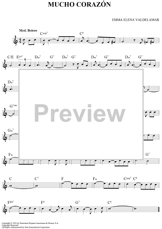 Digital Sheet Music for Mucho Corazón by Emma Elena Valdelamar scored for Lead Sheet; id:452269