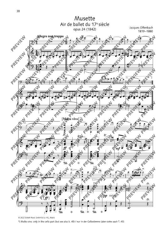 Digital Sheet Music for Musette by Jacques Offenbach scored for Cello And Piano; id:497712