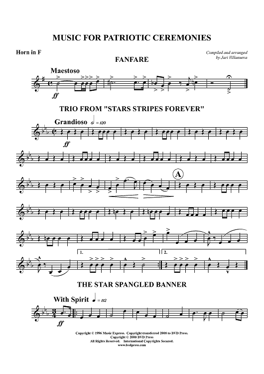 Contents: Fanfare; Trio from "Stars and Stripes Forever;" The Star-Spangled Banner; Grand Old Flag; America the Beautiful