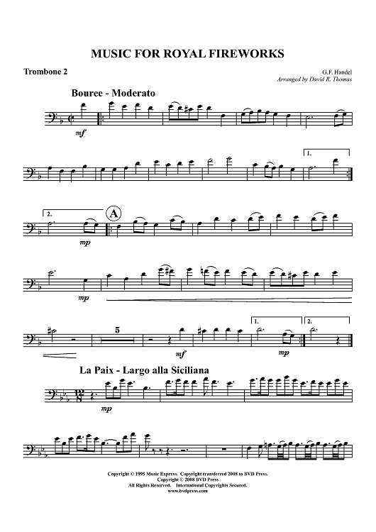 "Music for Royal Fireworks - Trombone 2" Sheet Music by George Frideric Handel