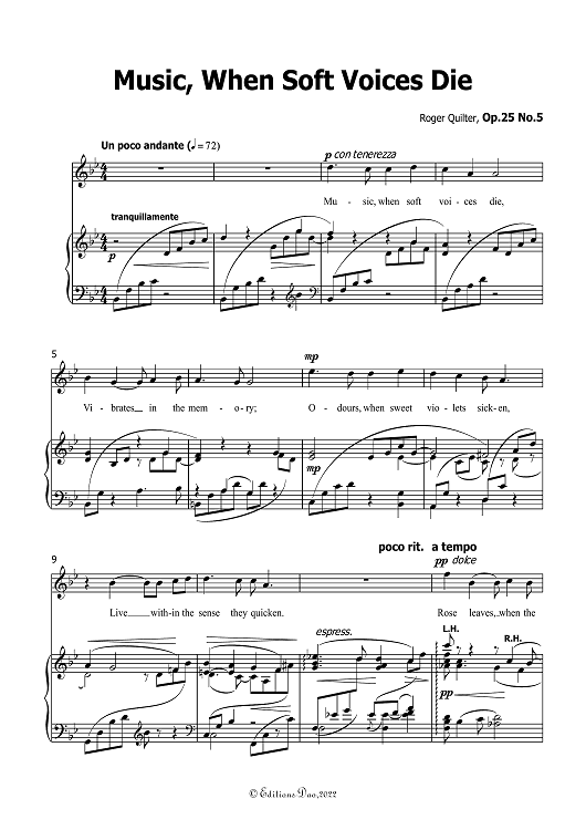 "Music, When Soft Voices Die, Op. 25, No. 5" Sheet Music by Roger Quilter