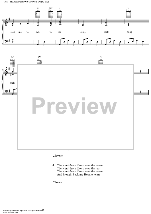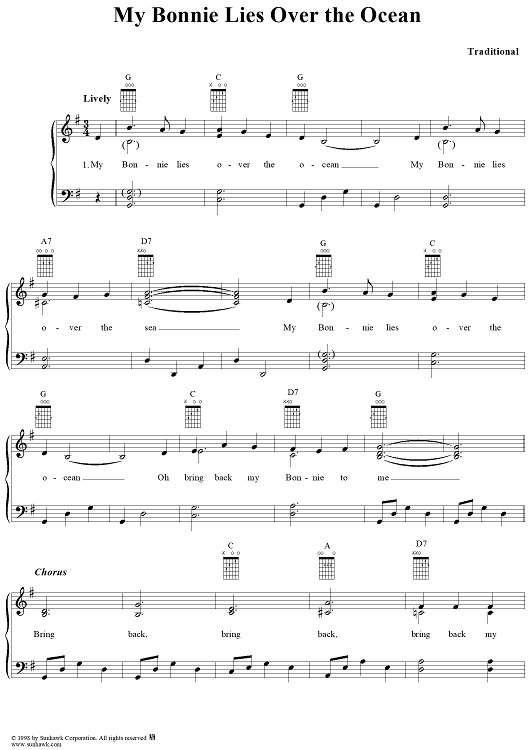 Digital Sheet Music for My Bonnie Lies Over the Ocean by Traditional scored for Piano/Vocal; id:113894
