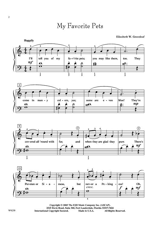 "My Favorite Pets" Sheet Music by Elizabeth W. Greenleaf