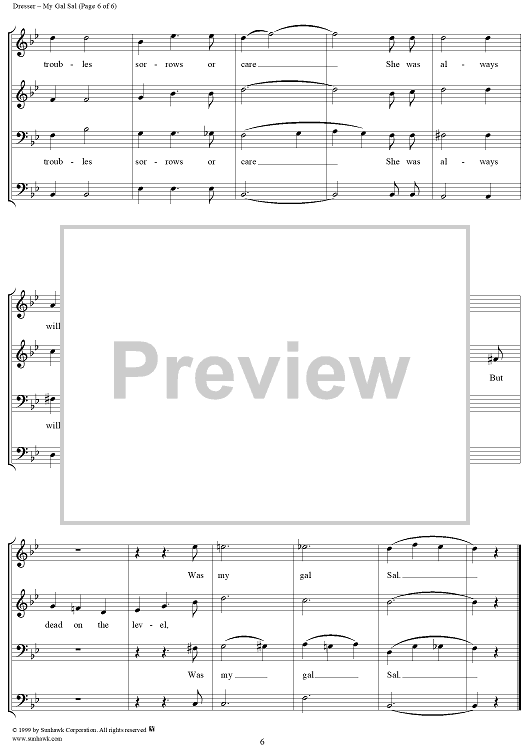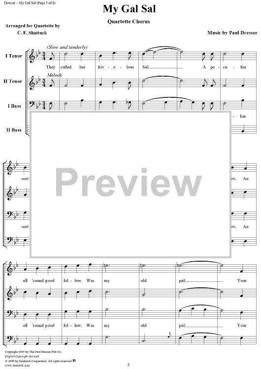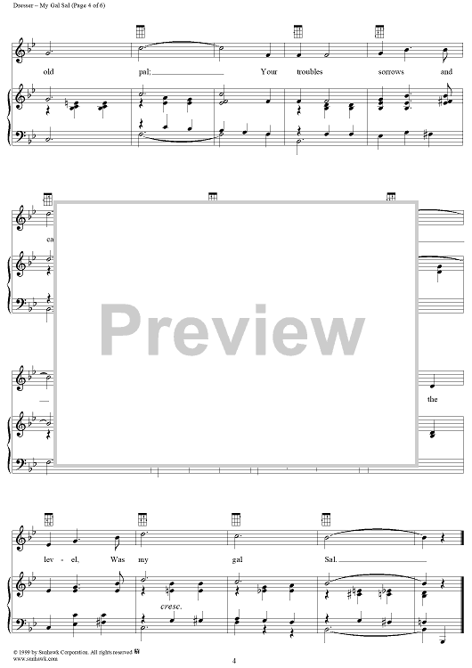 Digital Sheet Music for My Gal Sal by Paul Dresser scored for Piano/Vocal; id:258051