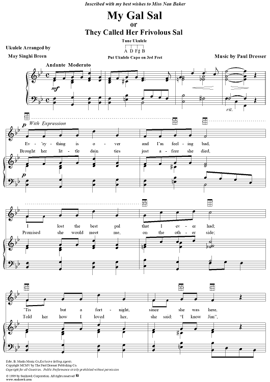 "My Gal Sal" Sheet Music by Paul Dresser