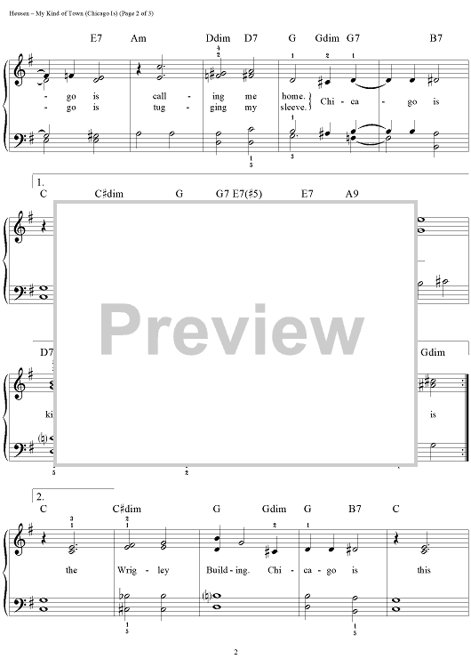 Digital Sheet Music for My Kind of Town (Chicago Is) by Sammy Cahn, Jimmy Van Heusen, John Brimhall scored for Easy Piano/Vocal; id:264871