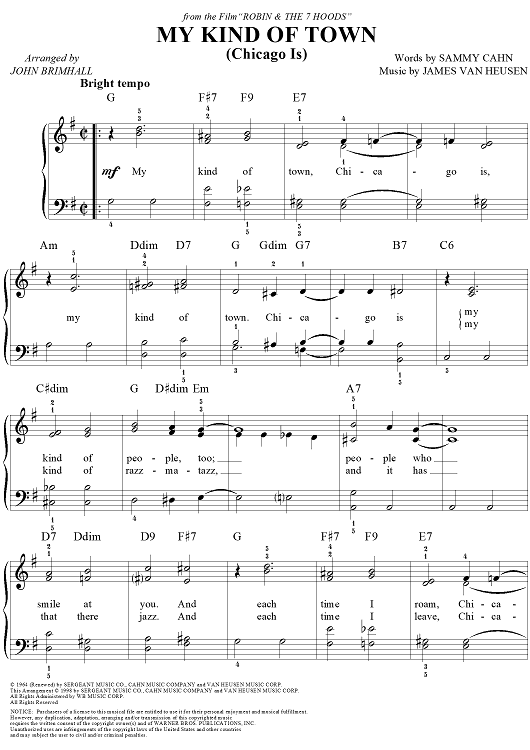 "My Kind of Town (Chicago Is)" Sheet Music by Jimmy Van Heusen