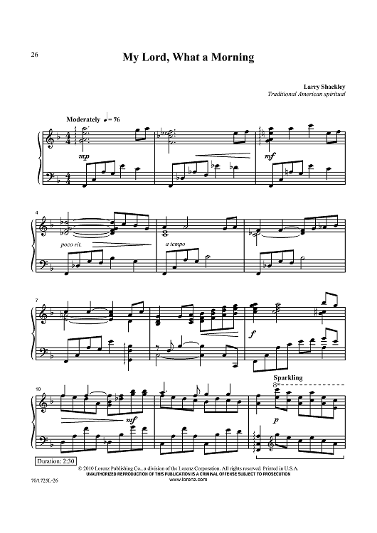 Digital Sheet Music for My Lord, What a Morning by Larry Shackley, Traditional American Spiritual scored for Piano Solo; id:433639
