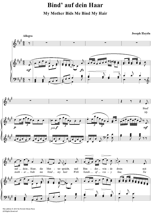 Digital Sheet Music for My Mother Bids Me Bind My Hair by Franz Joseph Haydn scored for Voice/Piano; id:118212