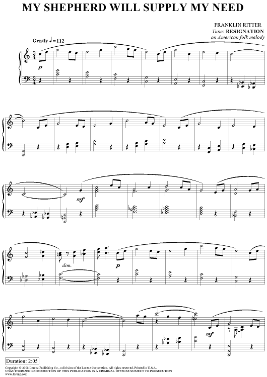 "My Shepherd Will Supply My Need" Sheet Music by Franklin Ritter
