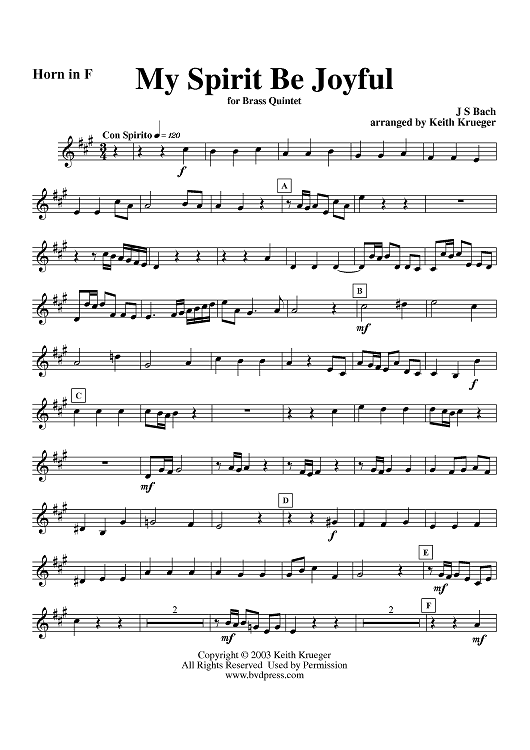 Digital Sheet Music for My Spirit Be Joyful - Horn by Keith Krueger, Johann Sebastian Bach scored for Brass Quintet; id:312377