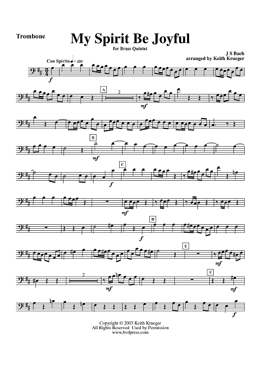 Digital Sheet Music for My Spirit Be Joyful - Trombone by Keith Krueger, Johann Sebastian Bach scored for Brass Quintet; id:312378