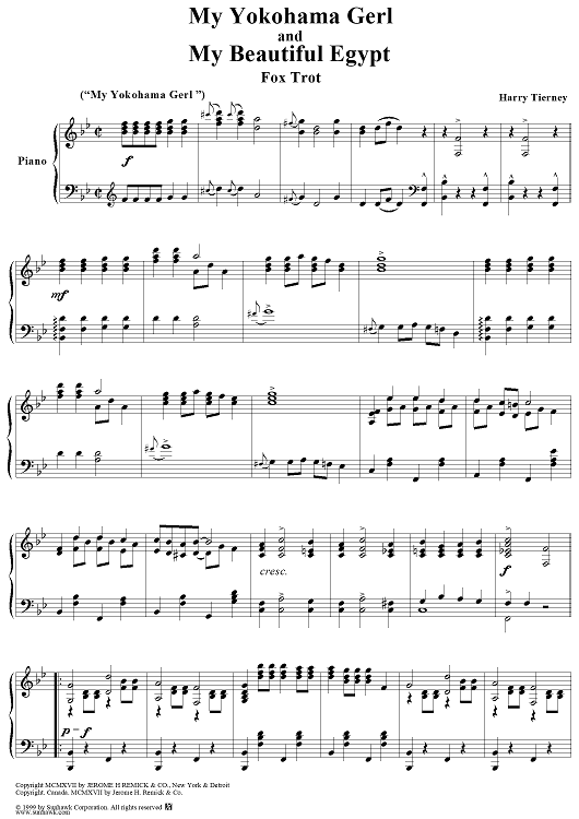 Digital Sheet Music for My Yokohama Gerl / My Beautiful Egypt medley (Fox Trots) by Harry Tierney scored for Piano/Vocal; id:260237