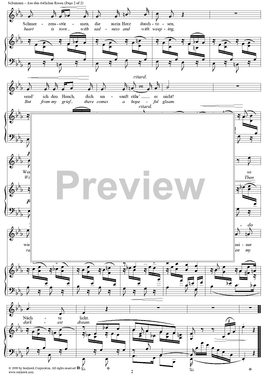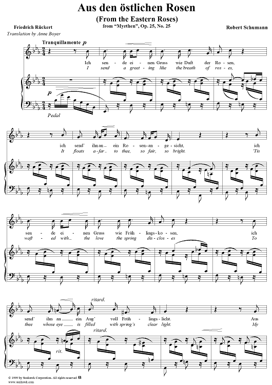 "Myrthen, no. 25: Aus den östlichen Rosen" Sheet Music by Robert Schumann