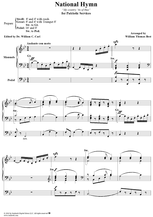 Digital Sheet Music for National Hymn by William Thomas Best scored for Organ Solo; id:254649