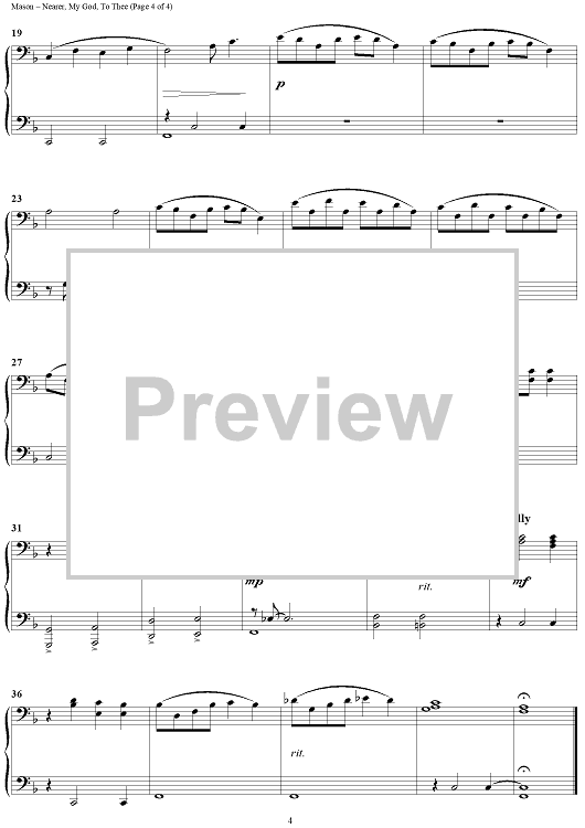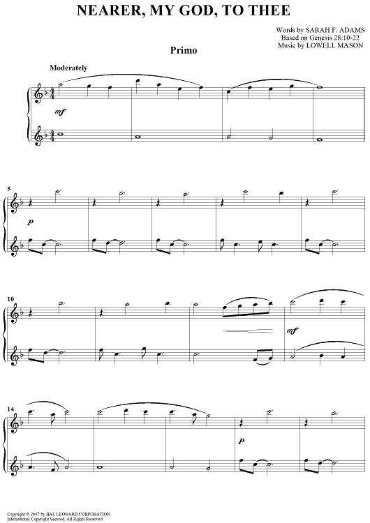 Digital Sheet Music for Nearer, My God, To Thee by Lowell Mason, Sarah F. Adams scored for 1 Piano, 4 Hands; id:402779