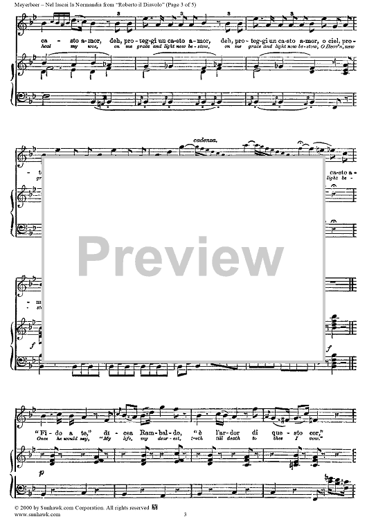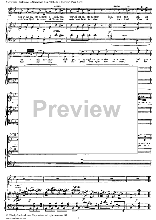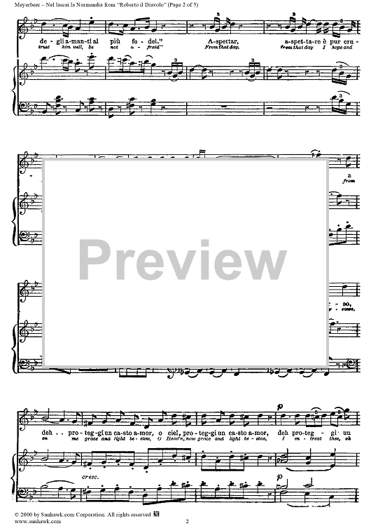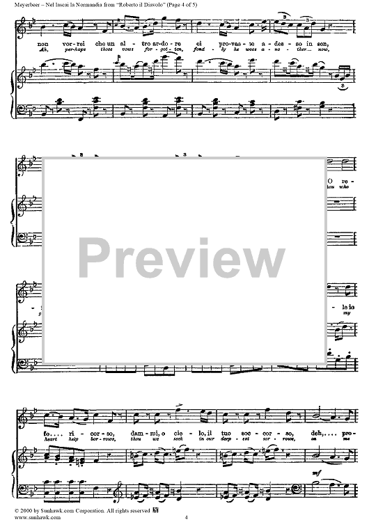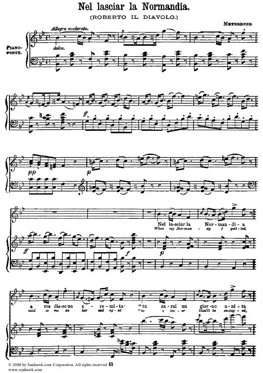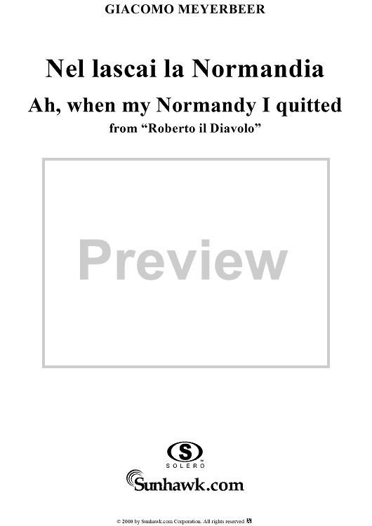 Digital Sheet Music for Nel lascai la Normandia by Giacomo Meyerbeer scored for Voice/Piano; id:254383