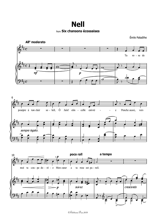 "Nell, from Six chansons écossaises" Sheet Music by Emile Paladilhe