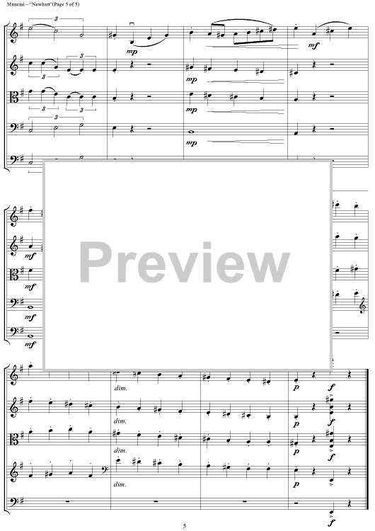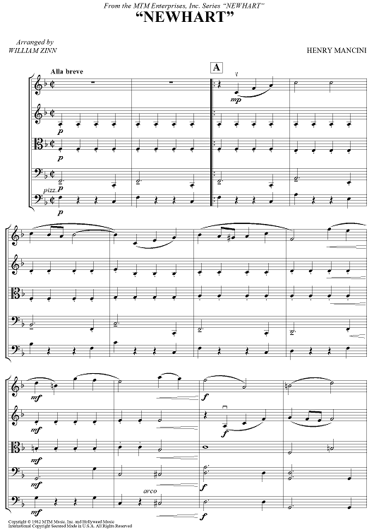 Digital Sheet Music for Newhart - Score by Henry Mancini, William Zinn scored for String Ensemble; id:458046