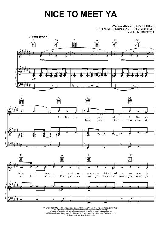 Digital Sheet Music for Nice To Meet Ya by Ruth-Anne Cunningham, Niall Horan, Julian Bunetta, Tobias Jesso scored for Piano/Vocal/Chords; id:467834