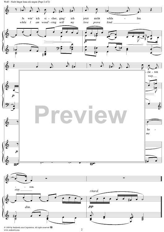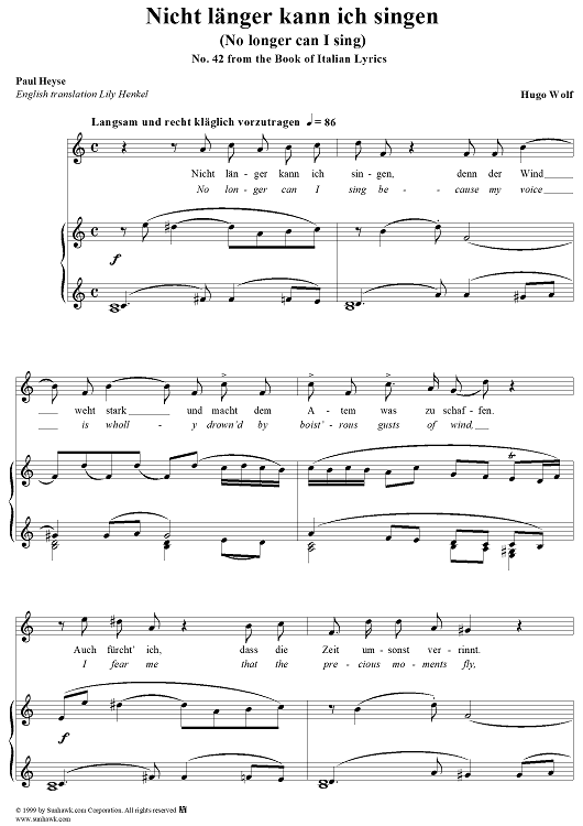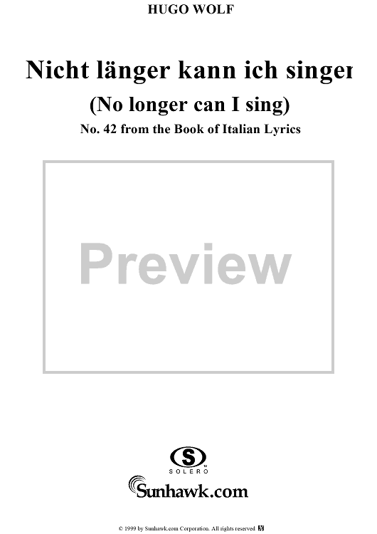 Digital Sheet Music for Nicht länger kann ich singen by Hugo Wolf, Paul Heyse scored for Voice/Piano; id:263453