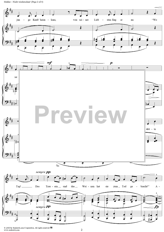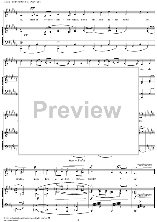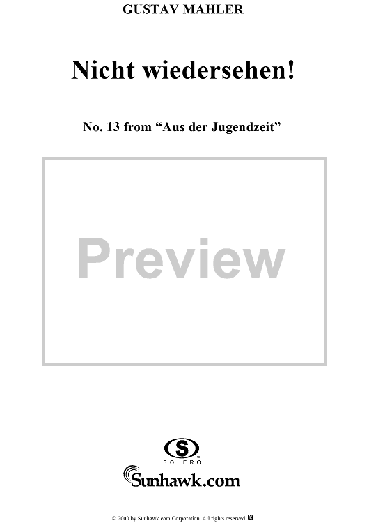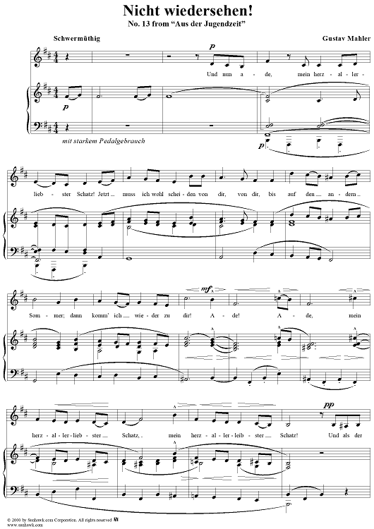 Digital Sheet Music for Nicht wiedersehen! - No. 13 from "Aus der Jugendzeit" Vol. 3 by Gustav Mahler scored for Voice/Piano; id:253360