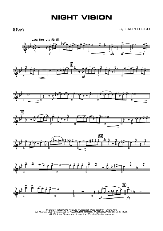 Digital Sheet Music for Night Vision - C Flute by Ralph Ford scored for Jazz Ensemble; id:358710