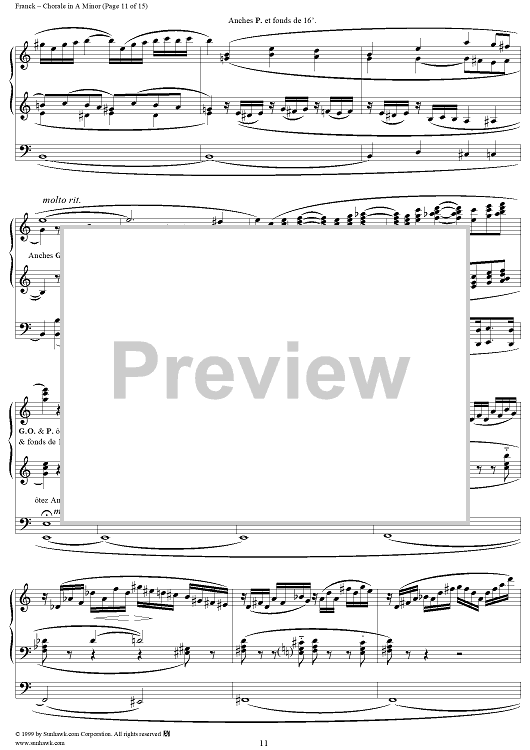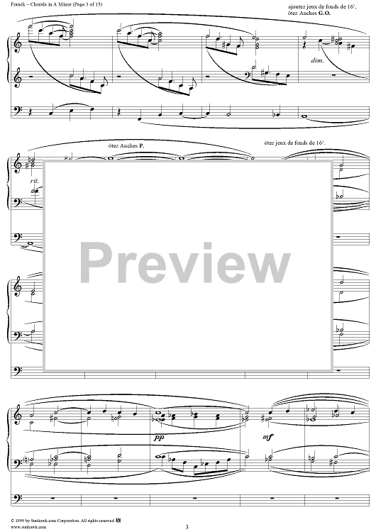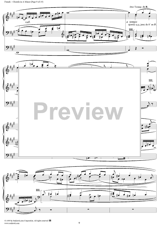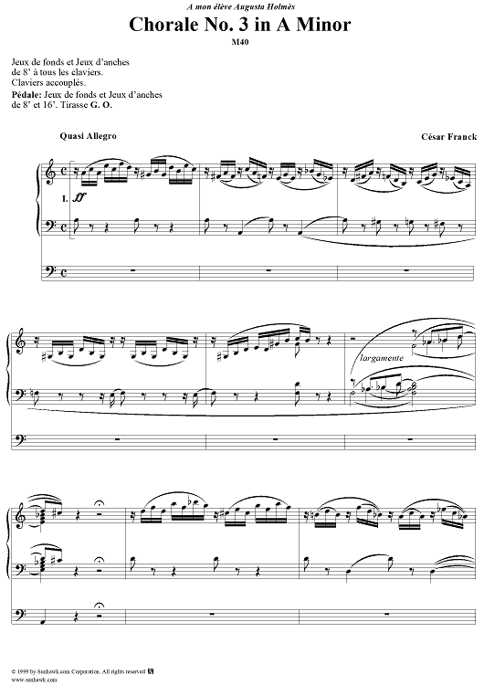 Digital Sheet Music for No. 3 in A Minor by César Franck scored for Organ Solo; id:120496