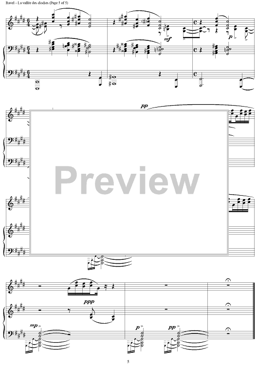 Digital Sheet Music for No. 5: La vallée des cloches by Maurice Ravel scored for Piano Solo; id:278956