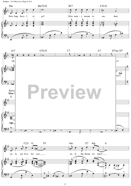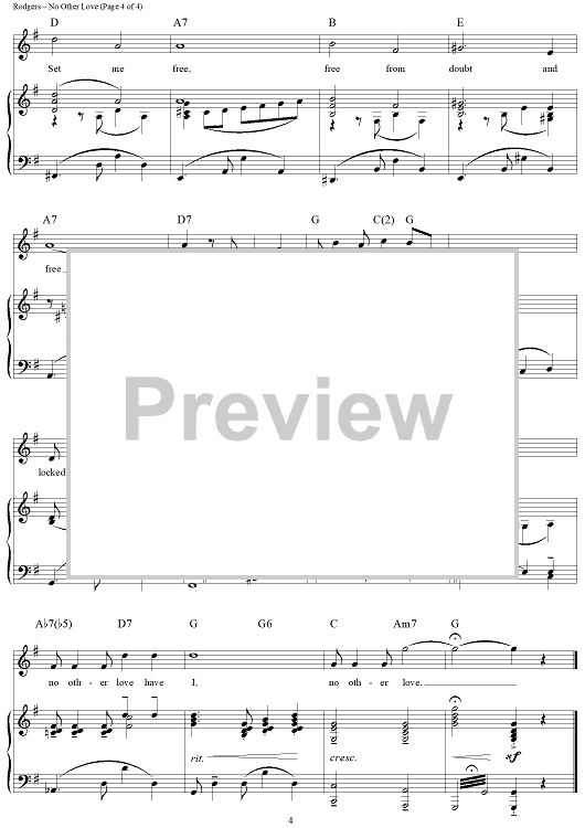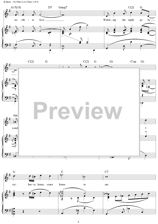 Digital Sheet Music for No Other Love by Richard Rodgers, Oscar Hammerstein II scored for Piano/Vocal/Chords; id:367138
