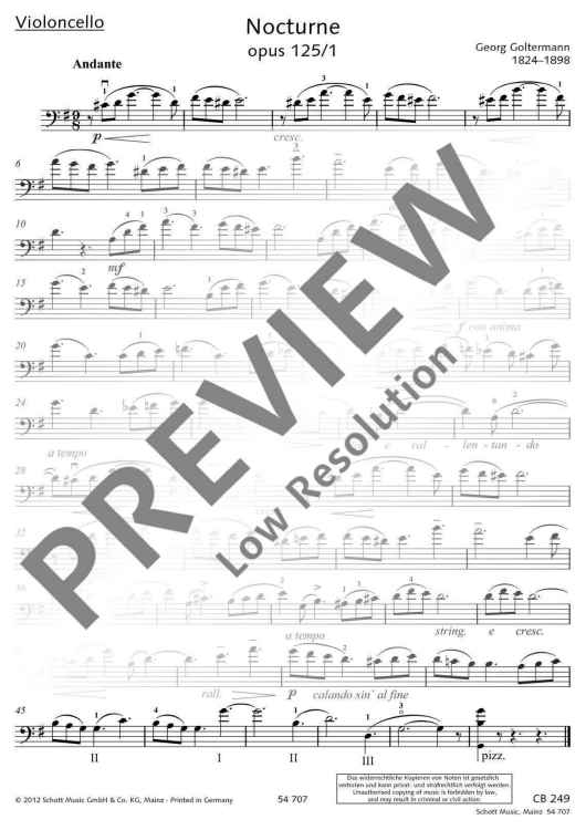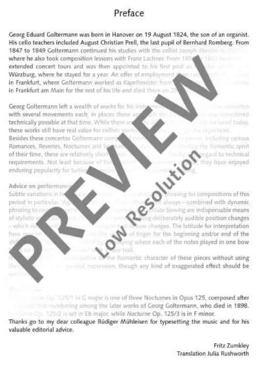 Goltermann (1824-1898) left a plethora of works for his instrument, including seven cello concertos which sometimes go to the limits of what was considered to be technically playable in his time. Even today, these works have maintained their importance throughout the methodological progress in literature. Apart from the concertos, Goltermann also composed a large number of character pieces, including romances, reveries, nocturnes and serenades. Stylistically wholly rooted in the Romantic spirit of their time, the pieces are relatively short and of medium difficulty as regards the technical demands. It is not least due to their melodic and harmonic catchiness that they enjoy a lasting popularity both in music lessons and in domestic concerts.
