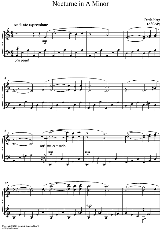 Digital Sheet Music for Nocturne in A Minor by David Karp scored for Piano Solo; id:497182