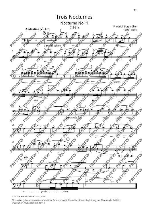 Digital Sheet Music for Nocturne No. 1 in A minor by Friedrich Burgmueller scored for Cello And Piano; id:497708
