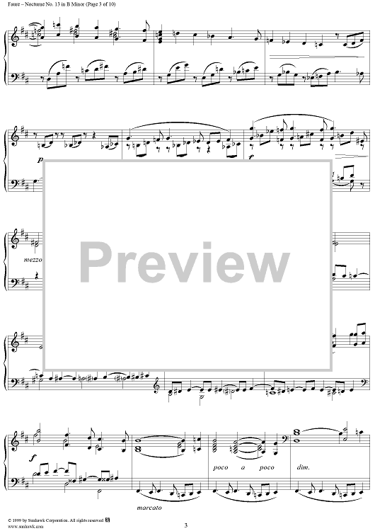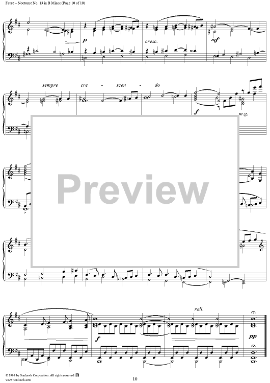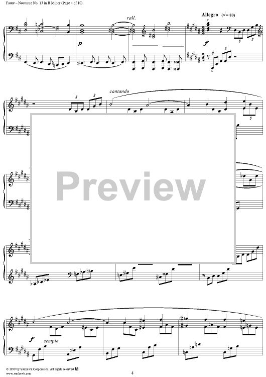 Digital Sheet Music for Nocturne no. 13 in B minor - op.119 by Gabriel Fauré scored for Piano Solo; id:269755